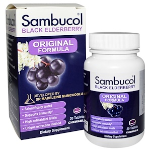 Sambucol, Черная бузина для укрепления иммунитета, Оригинальная формула, 30 жевательных таблеток