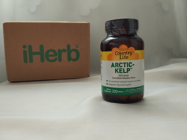 В комплексе Country Life йод, добытый из арктической ламинарии. В 1 таблетке 225 мкг, со соответствует 150% суточной нормы.