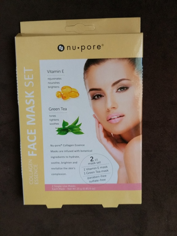 Nu-Pore, Набор коллагеновых масок для лица, витамин Е и зелёный чай, 2 одноразовые маски