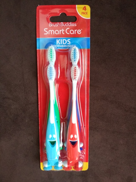 Набор детских зубных щёток из 4 штук с весьма оригинальным дизайном. Не содержит бисфенол-А. Взяла эти щётки для 2-летнего сына. Цена набора $2.35, соответственно, 1 щётка стоит $0.59, что намного дешевле, чем цена 1 щётки, например, бренда RADIUS ($3.06), Jack n' Jill ($4.99), Orajel ($2.56). Я захотела выяснить, есть ли смысл переплачивать за дорогие детские зубные щётки? До этой покупки я чаще всего покупала сыну щётки R.O.C.S. или NUK.