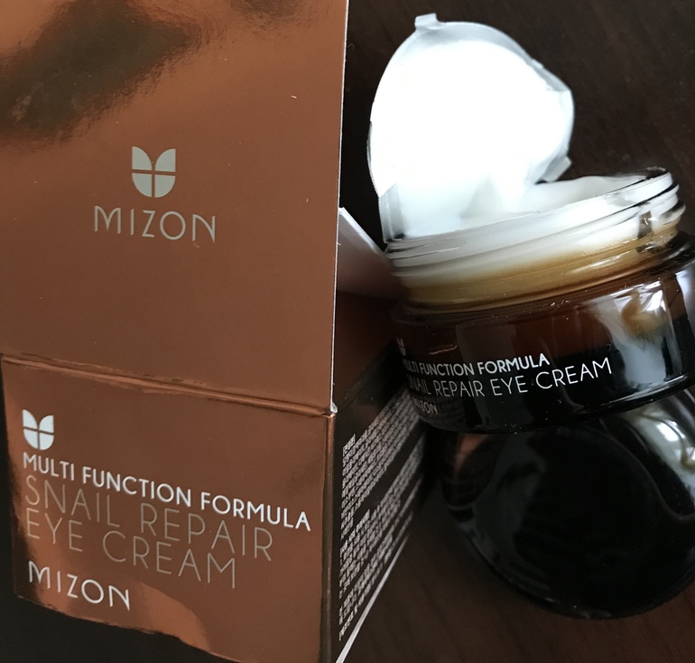 За кожей глаз ухаживаю весьма тщательно , использую с iherb и сыворотки, и патчи, и кремы. Крем Mizon у меня уже давно, и можно сделать полноценный отзыв о нем. Купила его после покупки коричневого крема -улитки этого же производителя. Данный крем мне также подошёл. Вот положительные качества муцина - белка улиточной слизи: