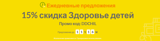 Новый промокод DDCHIL дает нам 15% скидку на категорию ЗДОРОВЬЕ ДЕТЕЙ