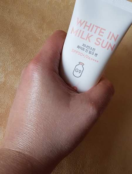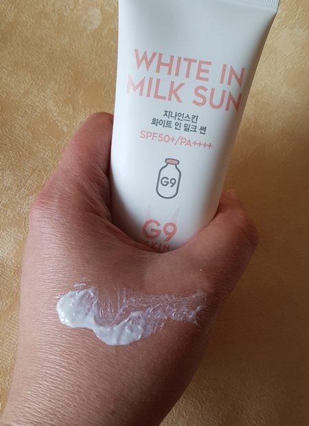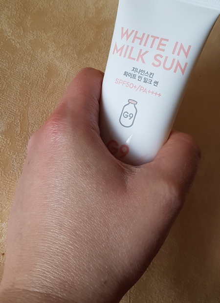 G9skin, Солнцезащитное средство White In Milk, 40 г из Кореи. Использовала его летом в городе. К сожалению, любой санскрин я чувствую на лице пленкой / маской. Кожа как будто потеет под ними.