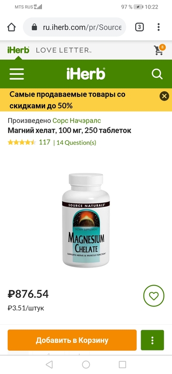 Мои оба пьют вот такой Хелат магния. Очень удобно, что в одной таблетке 100мг. И вообще, выгодный вариант. Какой только магний мы не пробовали, остановились на этом.