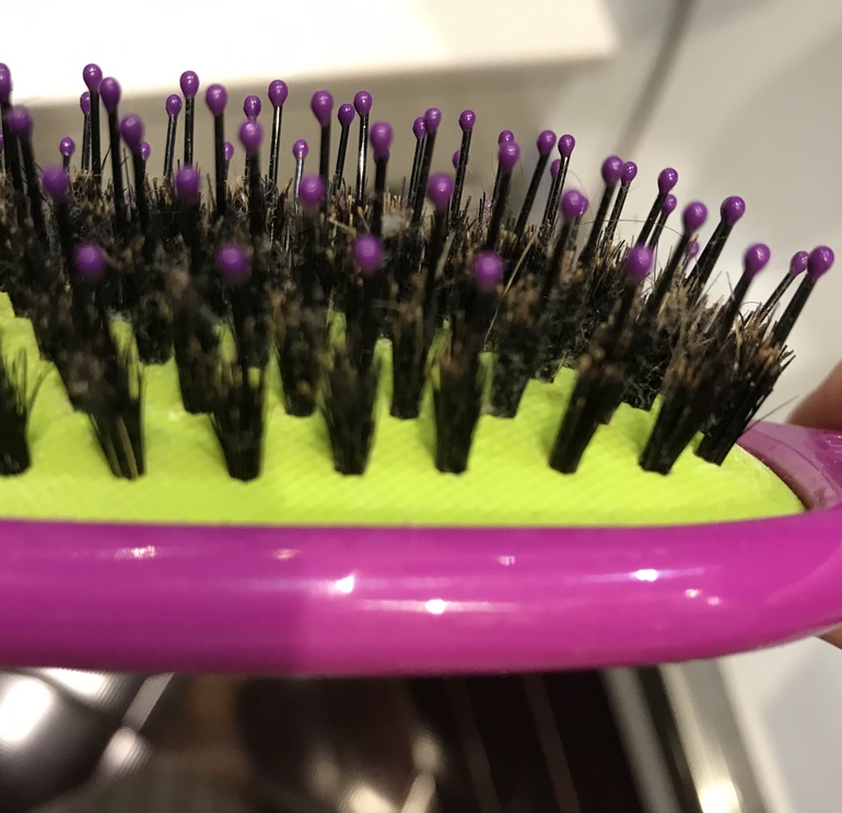 То есть основные щетинки дополнены более короткими пучками щетины. Эти розовые набалдашники отлично массируют кожу головы, а пучки действительно разглаживают волосы, прочесывает щетка изумительно! За счёт разглаживания волос и создаётся приятный здоровый блеск шевелюры. Отлично расчесывает колтуны на хвосте после зимнего высокого воротника, а также утром после сна. С сывороткой разглаживающей отлично заходит. Подруга уже купила своей длинноволосой маленькой принцессе косы расчесывать перед школой, и тоже в восторге! Кстати за счёт наличия ручки расческа намного удобнее Tangle tizeer. Дада, и ее я отодвинула лишь как дорожный вариант.