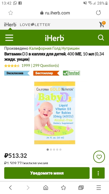 Что-то дефицит жидкого Д на сайте))) Такой видели https://ru.iherb.com/pr/Now-Foods-Liquid-Vitamin-D-3-2-fl-oz-60-ml/14060#details?rcode=BAL1299? Дозировка как раз деткам