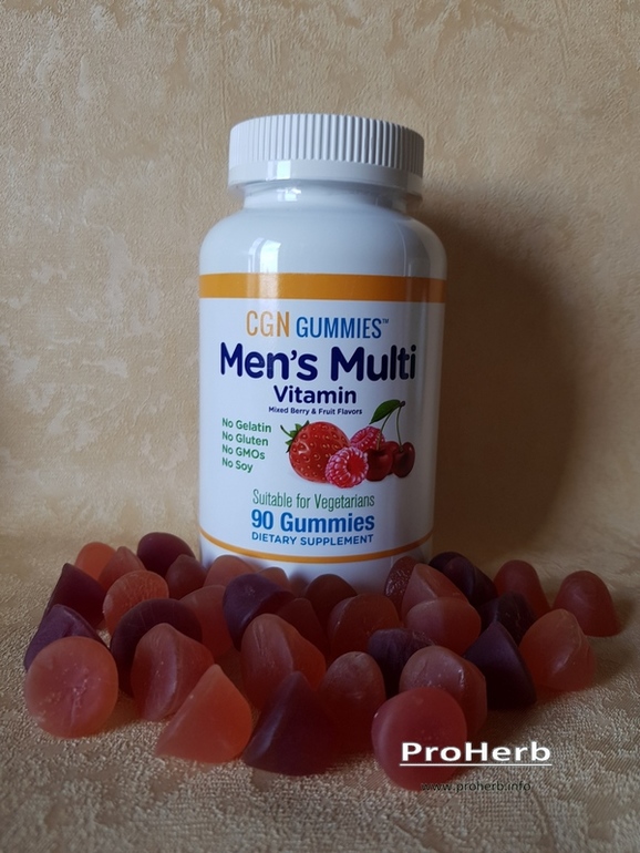 Супруг мой сильно не заморачивается формами минералов и органическим происхождением витаминных комплексов. Капсулы он глотает без энтузиазма, а вот детские сладкие мармеладки таскает с аппетитом. Собственно, поэтому и приобрела для него California Gold Nutrition, Жевательные пастилки с поливитаминами для мужчин, без желатина, без глютена, со вкусом органических ягод и фруктов, 90 жевательных пастилок