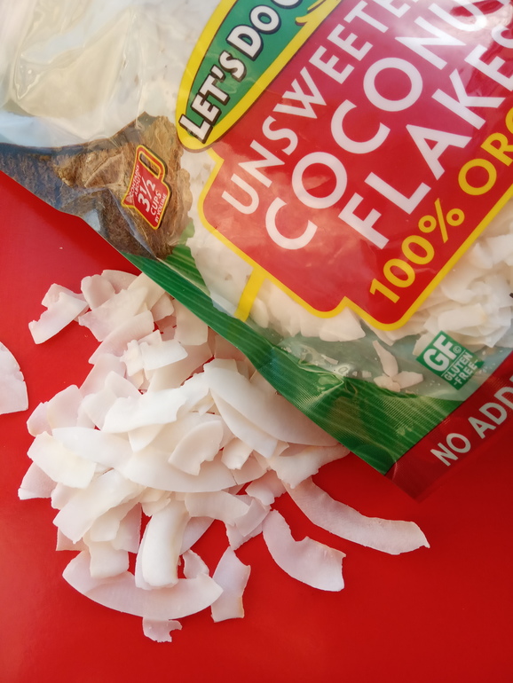 В пачке хлопья разного размера, вверху крупные, а внизу уже помельче, ну а на дне мелкая труха, которую можно с удовольствием съесть ложкой, что я и с делала )))Состав лаконичный : Органический кокос (нарезанный и обезвоженный).