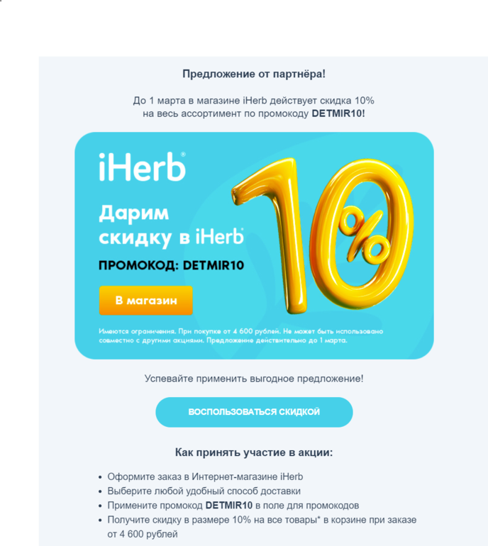 Шумел камыш в Клуб любителей iHerb 5 лет 10% скидка на заказ организационное / скидки промокод DETMIR Посмотрите еще 20 записей на эту тему Отменить Ответить Наталия К сожалению у меня не срабатывает 20.02.2021 Ответить Шумел камыш Попробуйте value60 21.02.2021 Ответить Изменение в реф системе с 1 марта Начисления за отзывы Чаты Беременных Выберите чат: Январята-2026 Февралята-2026 Мартята-2026 Апрелята-2026 Майчата-2026 Июнята-2026 Июлята-2026 Августята-2026
