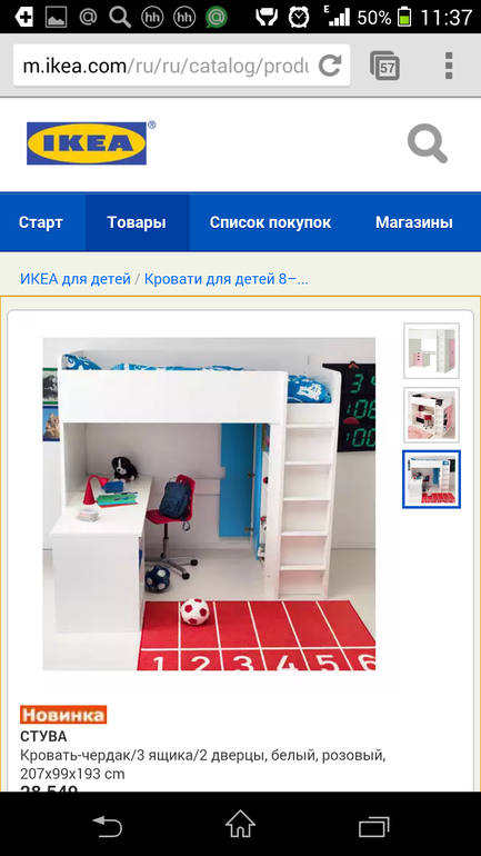 Поэтому изначально хотела взять кровать-чердак, потом мне понравилась кушетка Хэмнес с дополнительным местом (на случай гостей,бабушек-дедушек)....