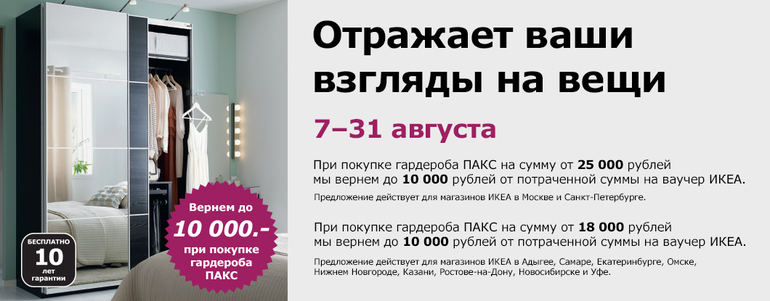 суть акции - покупаешь шкаф от 25 тыс, возвращают 5 тыс на ваучер