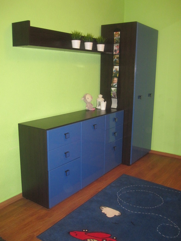 а мне нравиться, что так много синего! но,  у меня девочка, я бы, конечно, столько розового не разместила в комнате)))