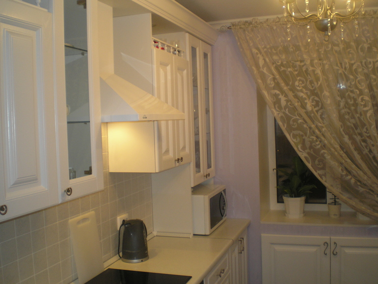 Очень уютно и светло! Эх, когда и мой ужас превратится в белоснежного лебедя? )))У нас такая же по форме кухня. Будем покупать Икеа-Лидинго. И вот не знаю как выкрутиться — мечтаю о круглом столе, но на такой узкой кухне, эх...