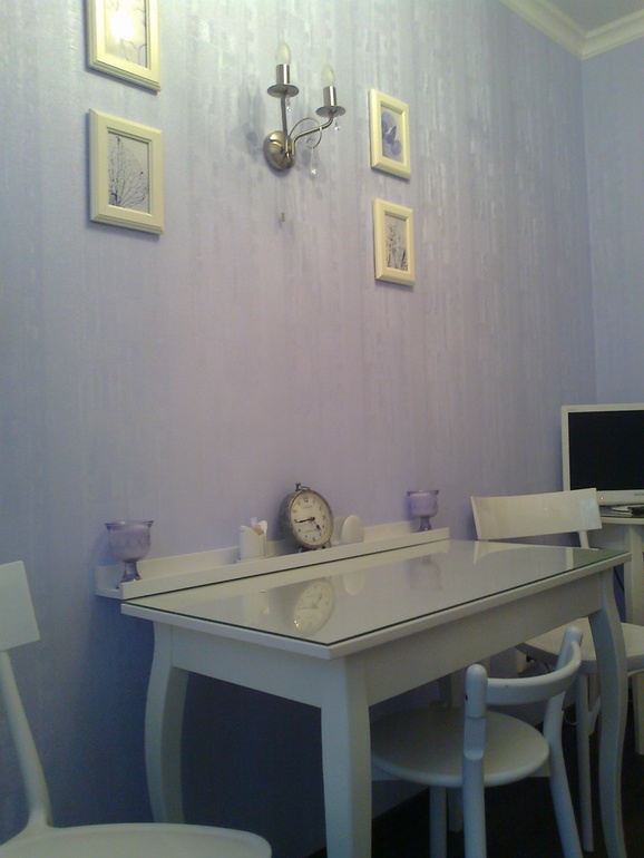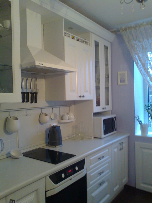 Это мой домКухня около 8 кв. м. узким вагончиком, 3,33 х 2,19. Ремонт был сделан в 2011 г., сейчас бы все сделала по другому. Сама кухня местного производителя, обеденную зону скоро ждет кардинальная переделка, а пока все выглядит вот так: