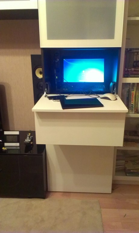 Это мой дом....спрятать ноут, когда нет необходимости на нем работать!!! Немного модернизировали систему Икеи. Очень удобно!!!