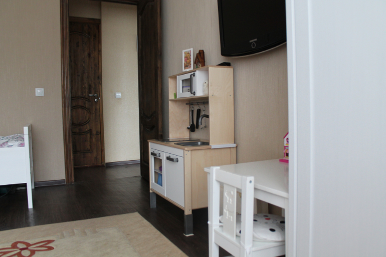 На кухне ) к нам гости приходят очень редко и мы решили, что две полноценные спальни важнее , чем возможность принять гостей пару раз в год