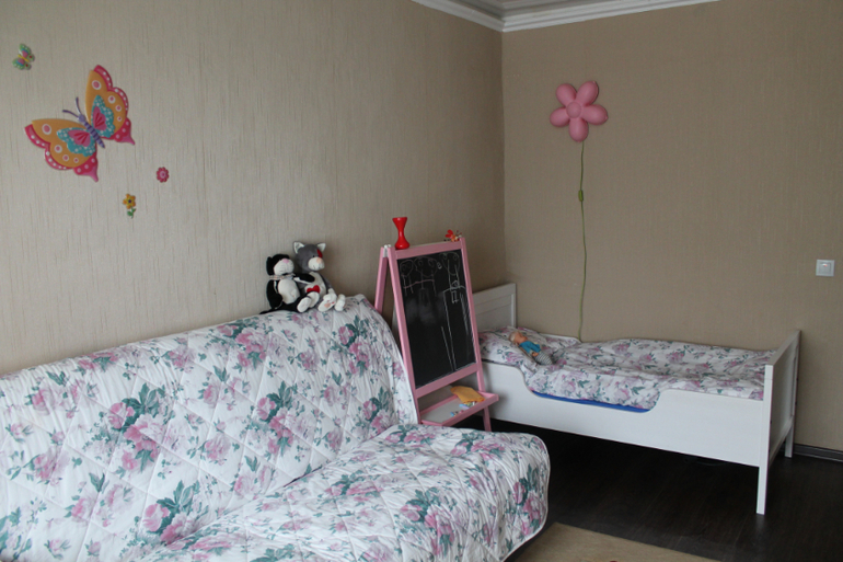 Весной мы пересили дочу из нашей спальни в другую комнату, бывшую гостиную. Выглядело все вот так . Я внимательно почитала комментарии , поразмыслила , и послезамены кухни взялась за детскую.