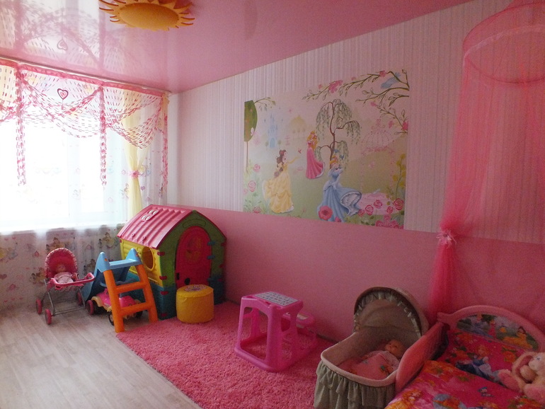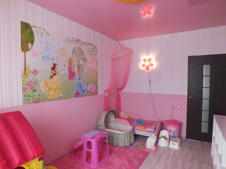 Здорово, уверена ваша дочь в восторге)))Единственное, потолок розовый я бы на белый заменила, тогда бы "розовость" не такой сильной была....