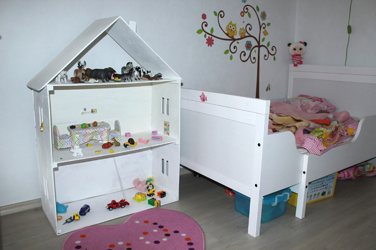 Домик, конечно, не в кассу и немного жутковатого вида, никак не доберусь его декорировать, а коврик и кровать ИКЕА