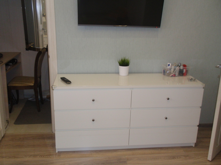Тумбочка и комод Мальм. Они в оригинале без ручек идут, взяли ручки такие же, как в Паксе, чтобы одинаково смотрелось. На два нижних ящика завтра прикрутим). Хотела две плетеные корзиночки на комод, чтобы поставить в них то, что сейчас временно стоит на комоде в пластиковом лотке (туалетная вода и т.п.), но в Икее ничего не подобрали, заказали на Алиэкспресс.