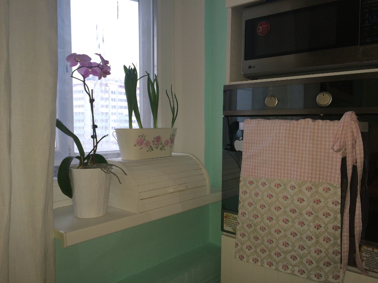 В нашей новой квартире ремонт пока сделан только на кухне. Вот здесь я пока и провожу свои эксперименты по декорирование пространства. До идеала пока далеко, но я ведь еще только учусь и вдохновляюсь идеями этого сообщества)))