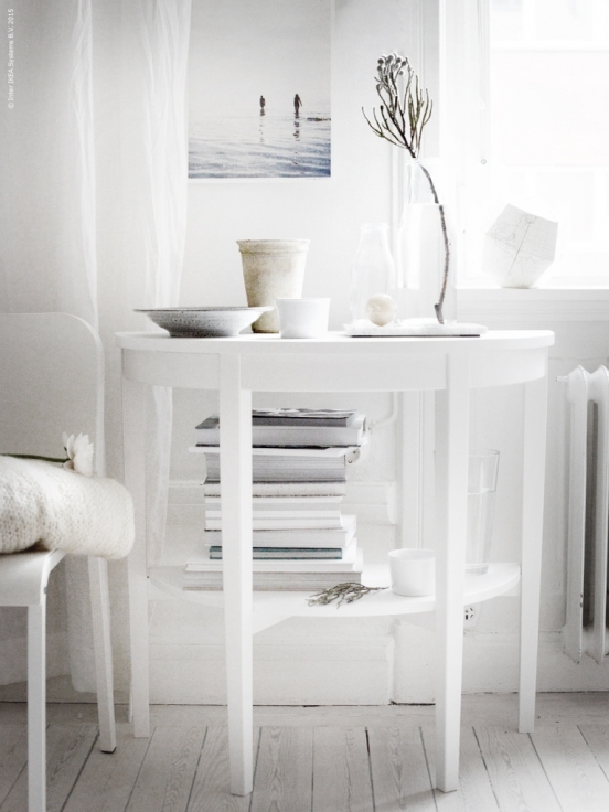Я так не могу, не люблю лишнюю мебель, по мне — чем меньше её тем лучше, поэтому всё что нравится тащить в дом не могу. У меня сейчас обстановка в стиле 50-60ых, в неё не вписывается такой стол, я уже ходила вокруг и щупала да вздыхала)) но никак не вписывается — разве что очаровательный журнальный столик из этой коллекции взяла бы — но он к сожалению чёрный. Мне от икеи скорее подходит мебель из серии стокгольм — грецкий орех, кожа с естественной структурой, мне нравится сочетание лаконичности и натуральности. Но в планах к осени выбрать между "стокгольм" и "бесто" (дверцы и фронтальные панели у этой серии появились красивые).