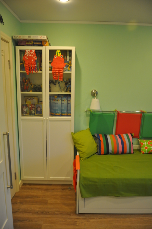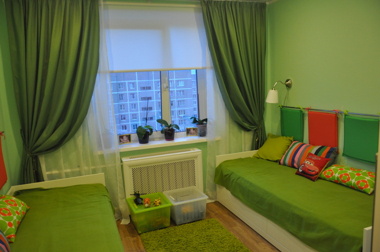 Супер, мне очень понравилось. у нас такая же комната примерно для двойнях ( чуть больше 13 метров) , все то же самое, но еще стеллаж каллакс для игрух влез ( мы еще пока маленькие))) и труфаст ступенчатый. Даже цвета в комнате такие же))) Женя, очень понравилась идея подушек на рейлинге над кроватями, подскажите, что за рейлинг и подушки