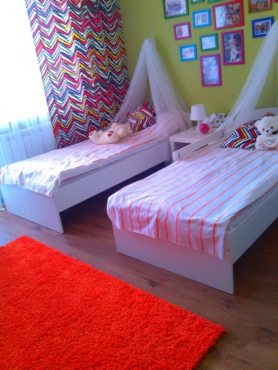 ссылка посмотрите на подбор цветов текстиля для детских. У вас же покрывала добавятся и ,возможно,ковёр.