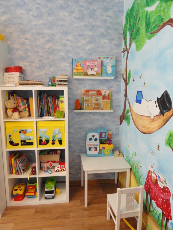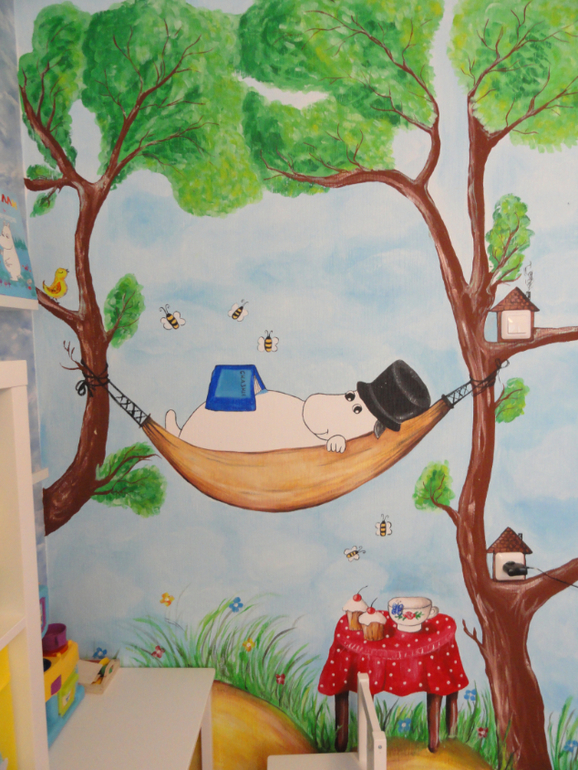 Рисунок сделала подруга,она как раз занимается росписью.Так что если вы из Питера и вам надо расписать стены,то могу дать ссылку на ее сайт.Цены очень хорошие.