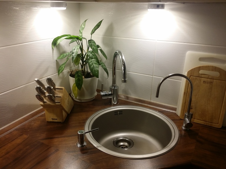 А это моя раковина. Цветы периодически сменяют друг друга, место лакомное - почти всегда горит подстветка:) кстати, маленький дозатор на столешнице - это средство для мытья посуды из икеа)