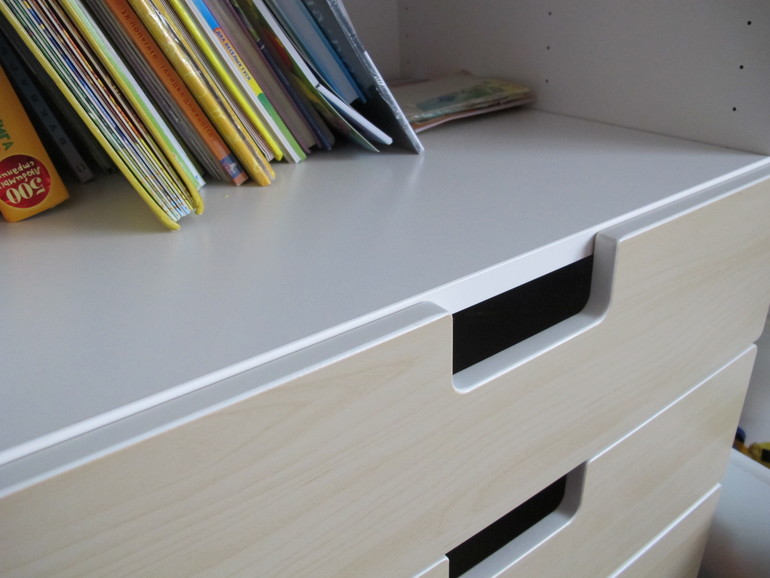 а, ну понятно про какую щель. Я думала про то, что фасад ящика чуть ниже, чем полка и образуется щель. А вы про щель между торцом полки и торцом ящика. Посмотрела как у нас - муж просто придвинул полку на уровень фасада, чтоб они были плотно. А у задней стенки шкафа есть щель с палец толщиной. Ее не видно и нам она не мешает. Если б вы не обратили мое внимание, я бы и не знала, что у нас так))
