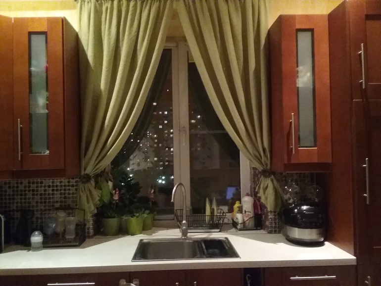 Спасибо большое. Вся квартира свободной планировки. С одного взгляда приняли решение о раковине перед окном. Никакого насоса не ставили, до стояка 2 метра, за 4 года проблем никаких. Ну иногда приходится конечно протирать окошко, но совсем не напрягает))) Мне очень нравится, и все лучше , чем смотреть в стену.
