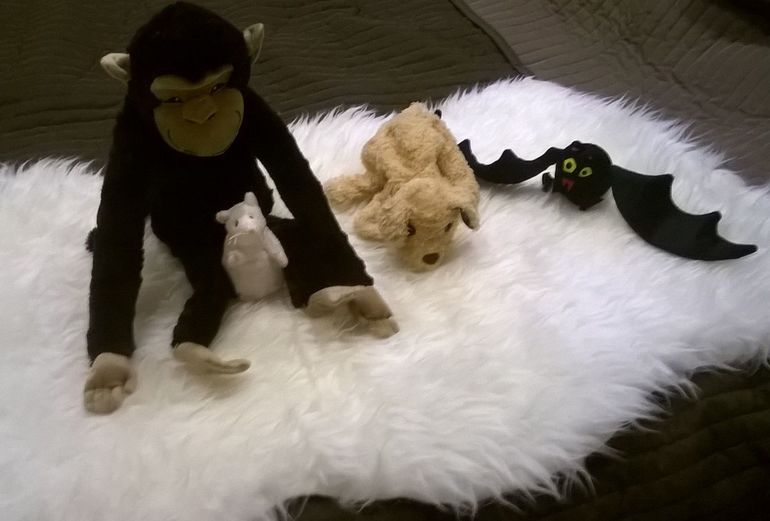 Купили символ следующего года. Перчаточную игрушку. Двух мышек. И иск. шкурку в сани.