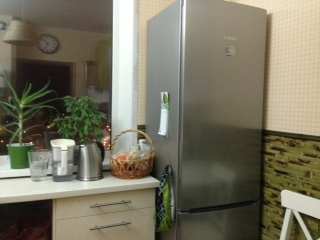 Места осталось катастрофически мало, поэтому сняла дверь, она открывалась в кухню. Раньше за дверью был холодильник - не удобно.