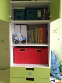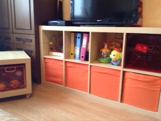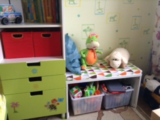 У нас за 4 года детская несколько раз менялась ))) Когда Старший был грудничком, там кроме детской кроватки, был стеллаж ЭКСПЕДИТ и комод МАЛЬМ (низенький в 3 ящика) с пеленальной доской. Так вот этот стеллаж переехал в зал, и теперь у нас там детский уголок
