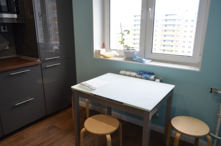 красиво,вообще полюбила серый цвет в интерьере...единственно смущают табуреточки,у Вас такая кухня нарядная получилась,со стульями бы выглядело еще круче