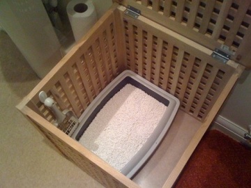 Смысл туалета вообще не поняла. У нас угловой пластиковый домик. Отлично моется и всё убирается. Наберите в поиске закрытй туалет для кошки или кошачий домик-туалет