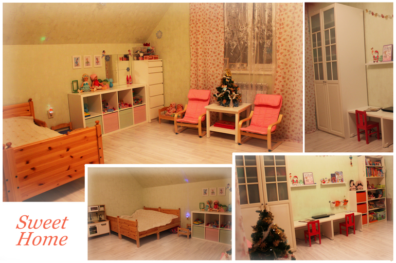 Это мой домВот такая получилась детская. Ещё не всё завершено, ещё не оформлена часть стены над кроватками (кроватки дочки не разрешают разъединять пока, любят спать рядышком =)