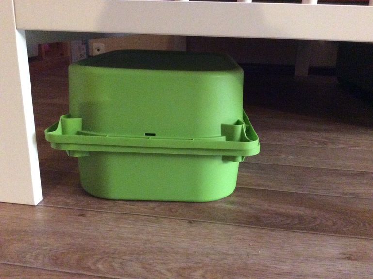 Пайсслингар или Кусинер, кроватные ящики. Кусинер для нас лучше, он легко распахивается, сбоку посередине липучки, можно полностью откинуть крышку, можно наполовину. У нас под кроватью два: в одном ЛЕГО (порядка 10 средних наборов поместилось, и есть еще место), во втором мелкие игрушки, по признаку НЕ машинки.)))
