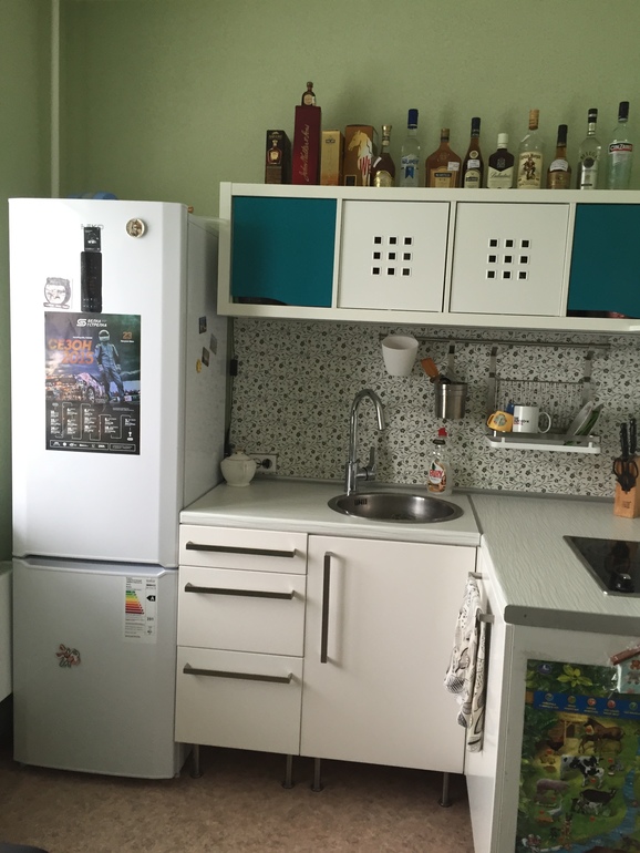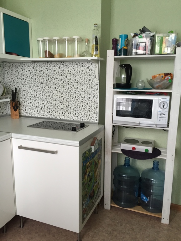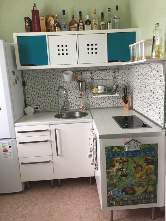 Спасибо за предложение! Но двигать уже точно ничего не будем) У нас в комнате мебель постоянно "гуляет"🙊. Кухню решила оставить в покое. Квартира временная. Стараемся вкладывать со минимуму!