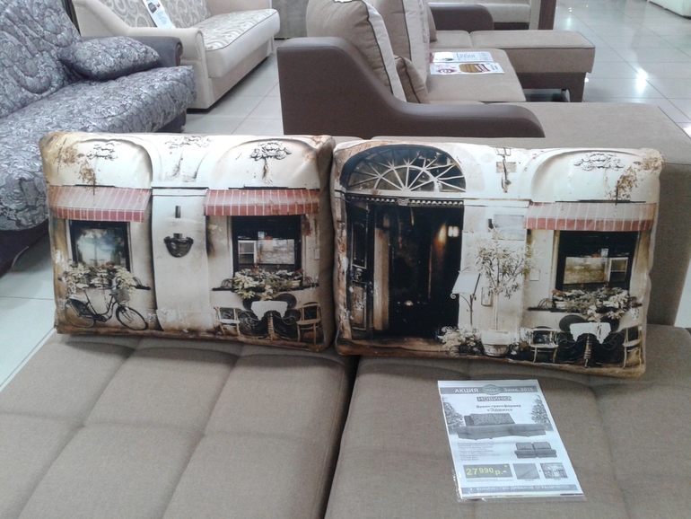подушки,да вот эти будут. А покрывало я просто ткань заказала серую ,однотонную только с вырубкой.У них где подушки покрывал не было.
