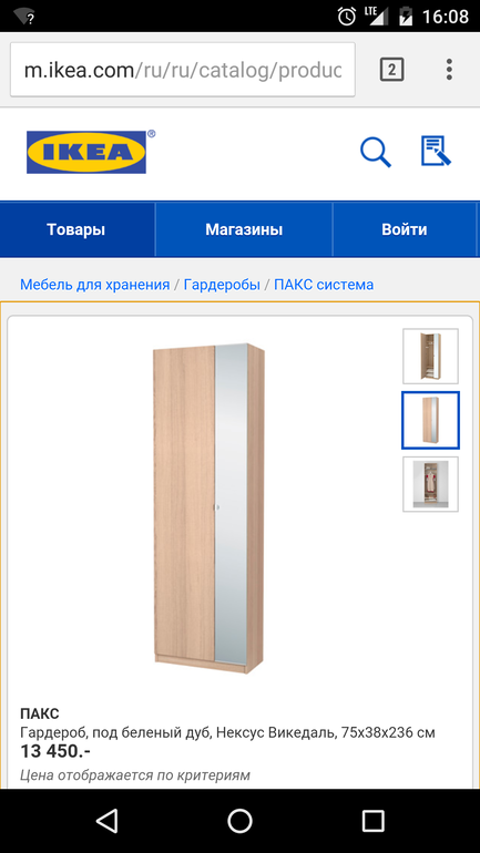 ПокупкиМожет кто знает, есть ли ПАКС шириной 75 см без узкой зеркальной дверцы?
