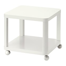 Купили вместо столика лакк. Тут огромный плюс - колесики, легко катаются по ламинату, а также скругленные углы.