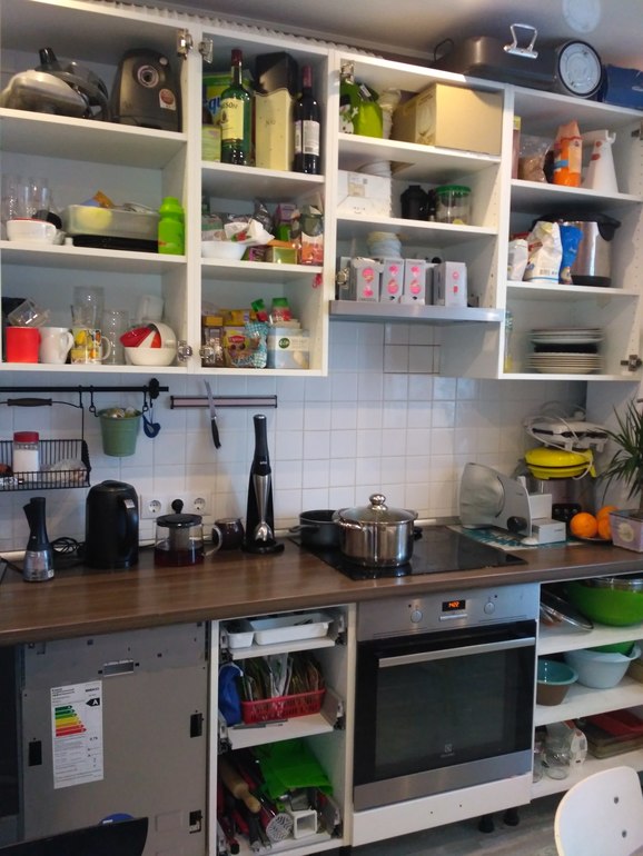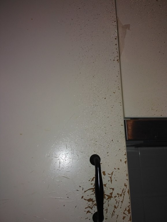 Кухне 3 года...Вытежка есть, пользуюсь. Все верхние двери потрескались, а нижние частично. ...