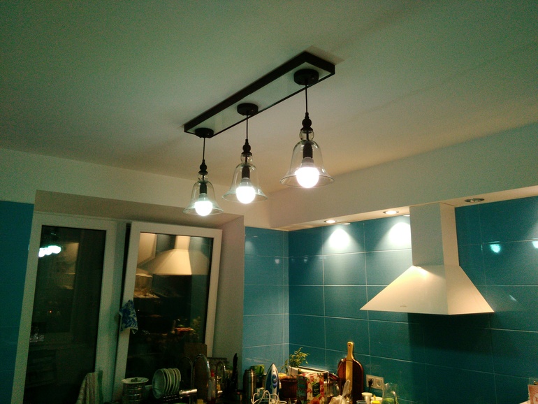 Осталось показать потолок, вернее, его украшение - люстру, придуманную и выполненную золотыми руками Димы!