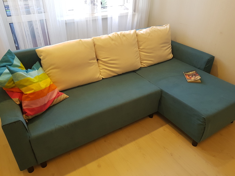 Сделано рукамиТе, у кого есть этот диван, знают насколько он капризный. У нас за 5 лет он превратился в ужааааасное нечто, стыдно было звать кого-то в гости. И вот я созрела - купила 9 метров мебельной ткани на диван, 4 метра на подушки (3 большие и будут еще другие декоративные, но на них сейчас вышивку делают). Взяла у папы строительный степплер и пошла работа 😅 вот итог: