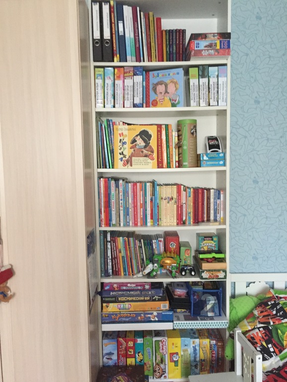 у вас кстати тоже такое можно сделать, по бокам место позволяет. И билли вам не нужен будет. В эти стеллажи столько помещается! Лишнее на верх, во что играют снизу. В выдвижных ящиках все для школы тетрадки, ручки и прочее.