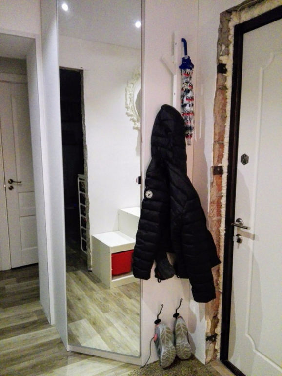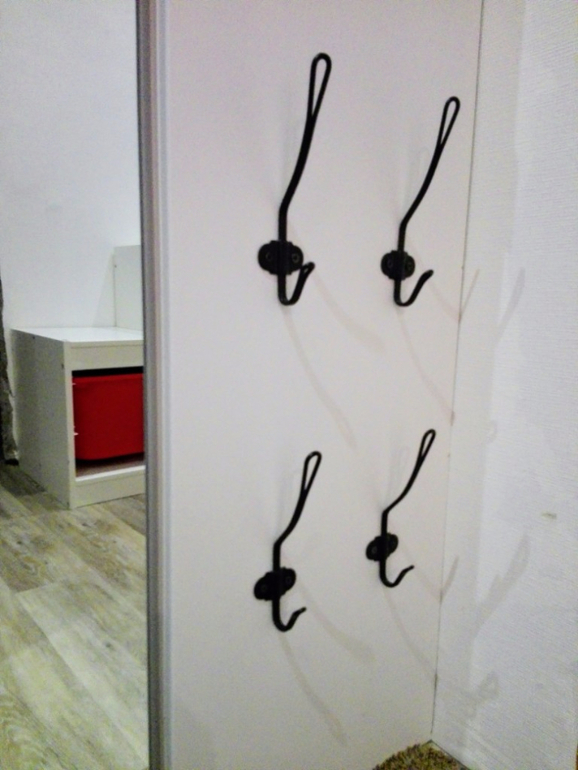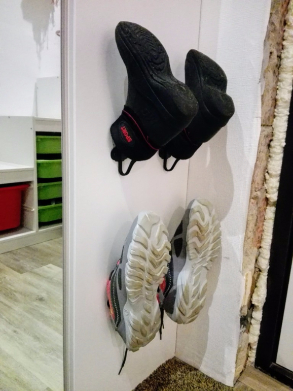 Ещё раз подчёркиваю для невнимательных. Обувь на крючках размещается ВРЕМЕННО. Для прослушивания во время дождя. Или при нашествии большого количества гостей. Если прихожая площадью 1,5x1,5м -, особо не разгуляешься.