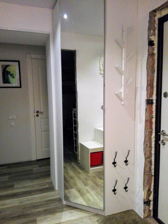 На боковую стенку Пакса прикрутила крючки и вешалку Чусиг. Получилось отличное место для: