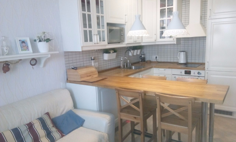 Все для кухниКлассический варинат кухоньки от Икеа. В данном случае, очень компактно получилось разместить и обеденный стол. Стол зонирует пространство, получаем сразу две зоны. и уже не просто кухня. а кухня-гостинная